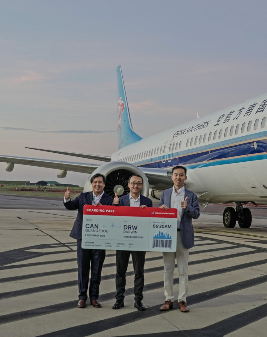 Air connectivity in and out of the Northern Territory has received a boost with new China Southern flights to Darwin (DRW). The airline started thrice-weekly B737-8 round-trips between Guangzhou (CAN) and Darwin on December 4, 2025.